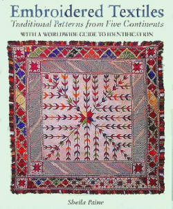 Embroidered Textiles, Sheila Paine, Thames & Hudson, 1995. 279 illustrations. Traditional patterns from five continents with a worldwide guide to identification. Sheila Paine is a widely-travelled expert in embroidered textiles, with a special interest in the traditions of the tribes of central and south Asia. She is an equally accomplished writer, and the photographs are stunningly beautiful. |